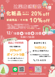 12/18(木)・19(金)・20(土)は 辻薬店感謝祭!